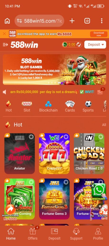 The 588 win Game is the latest trend in Pakistan as it unites the simplicity of mobile games with the possibility of earning money, which appeals to a large number of people. The application is smartphone friendly, can run on average phones, and registration and logging in are quick taking not more than a few minutes to complete thus beginner friendly. A wide range of different types of games can played by players: predictions, cards, slots, crash-style, and others, which make the experience interesting and fast-paced.